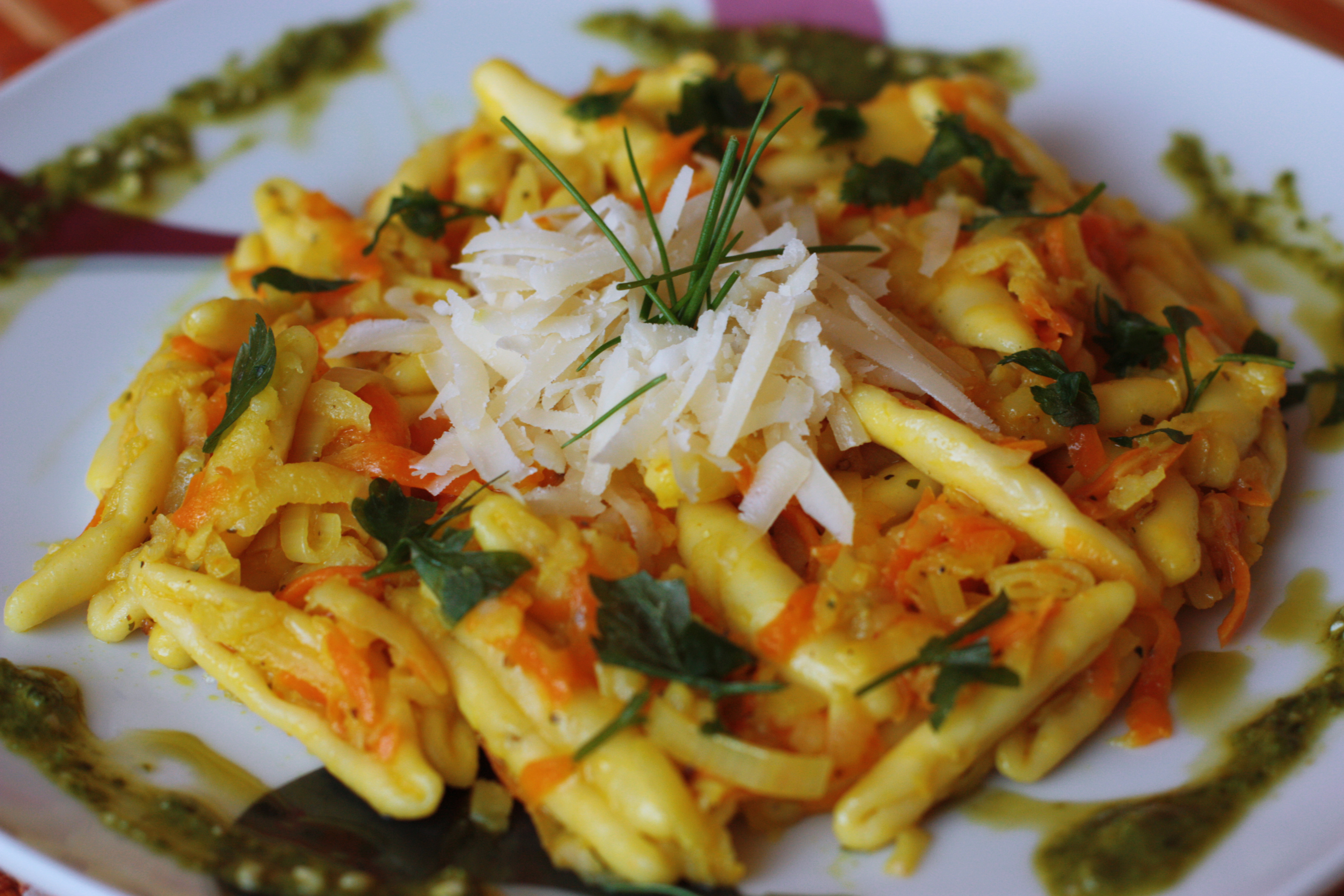 Výborná a ľahká verzia obedu ala Italia. Cestoviny su zjemnené zeleninkou udusenou na masle a podčiarknuté výraznou chuťou bazalkového pesta. Bon appetit 🙂