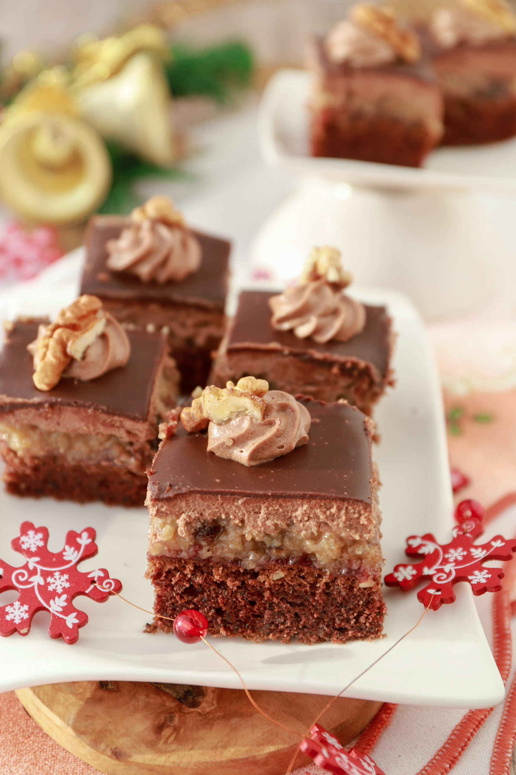 TIP: Do orechovej plnky môžete pridať aj hrozienka namočené aspoň 4 hodiny v rume. Ak nemáte radi maslové krémy, kľudne ho v koláčiku vynechajte a spravte len korpus, orechovú plnku a čokoládovú polevu. Čas prípravy sa skráti a koláčik bude tiež chutiť výborne. Zlatý klas môžete nahradiť aj vanilkovým alebo smotanovým pudingom, džem môžete použiť marhuľový alebo malinový. Trstinový cukor zvyknem mlieť na práškový v elektrickom mlynčeku na kávu alebo spolu s orechmi v sekáčiku s S nožmi. Misku na topenie čokolády nájdete v domácich potrebách aj pod názvom miska do vodného kúpeľa a veľmi si ju obľúbite. Koláčik v polovičnej dávke môžete urobiť na malý plech, alebo aj do tortovej formy ako sviatočný vianočný koláč.